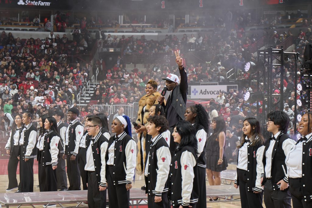 Teens from the ASM Vocal Arts Ensemble then made their debut, performing “Shining Star” with Keke Palmer, an award-winning entertainer, and J. Ivy, spoken word artist. The young artists sang and danced in front of thousands of fans, bringing energy, confidence, and professionalism to the Bulls game stage.