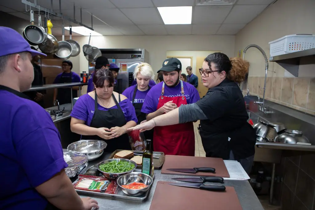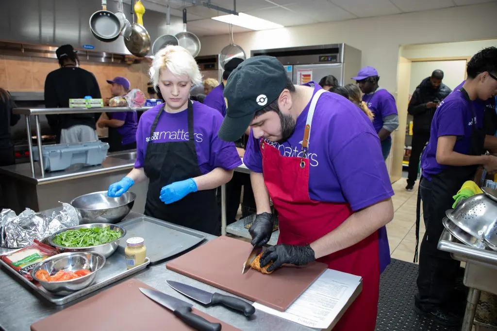 Teens in After School Matters’ Cooking and Baking program at the Lutz Center and the You Got Served Culinary program in the Austin community got a powerful reminder of what’s possible when passion meets opportunity. During a hands-on visit from Chicago Bulls forward Julian Phillips and team chef Christine Blank, young chefs stepped into the spotlight—showcasing their skills, asking thoughtful questions, and learning how their culinary talents connect to real-world careers.