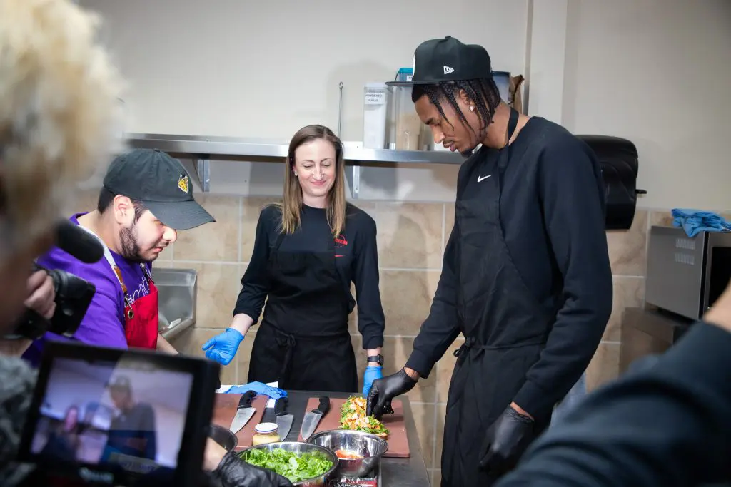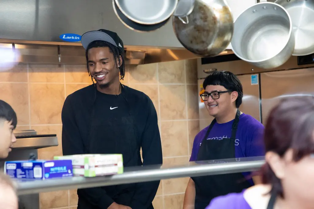 Julian shared stories about how cooking has always grounded him, crediting his family for instilling a love of food and togetherness. As teens plated their dishes, he talked openly about what he eats before games, how his nutrition has evolved since entering the league, and how experimenting in the kitchen helps him stay connected to home.