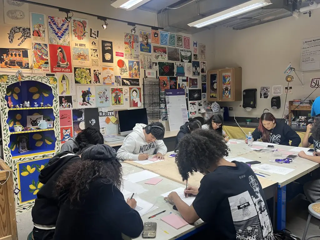 ASM’s Advanced Drawing and Painting Portfolio instructors got into the Halloween spirit with creative costumes and festive makeup! Teens joined in the fun during a Halloween Craft Night at Gallery 37 hosted by the Intro to Printmaking program. Teens enjoyed face painting, bracelet making, spooky stickers, and coloring together.