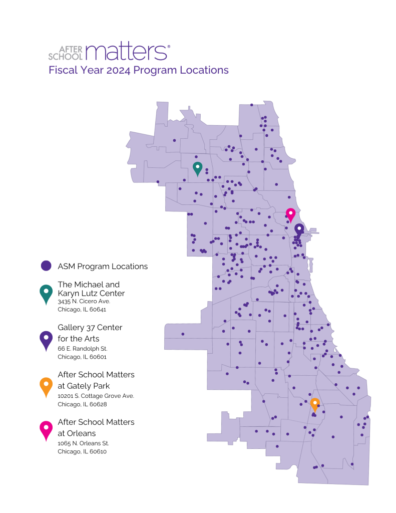 Each purple circle represents an After School Matters program site.