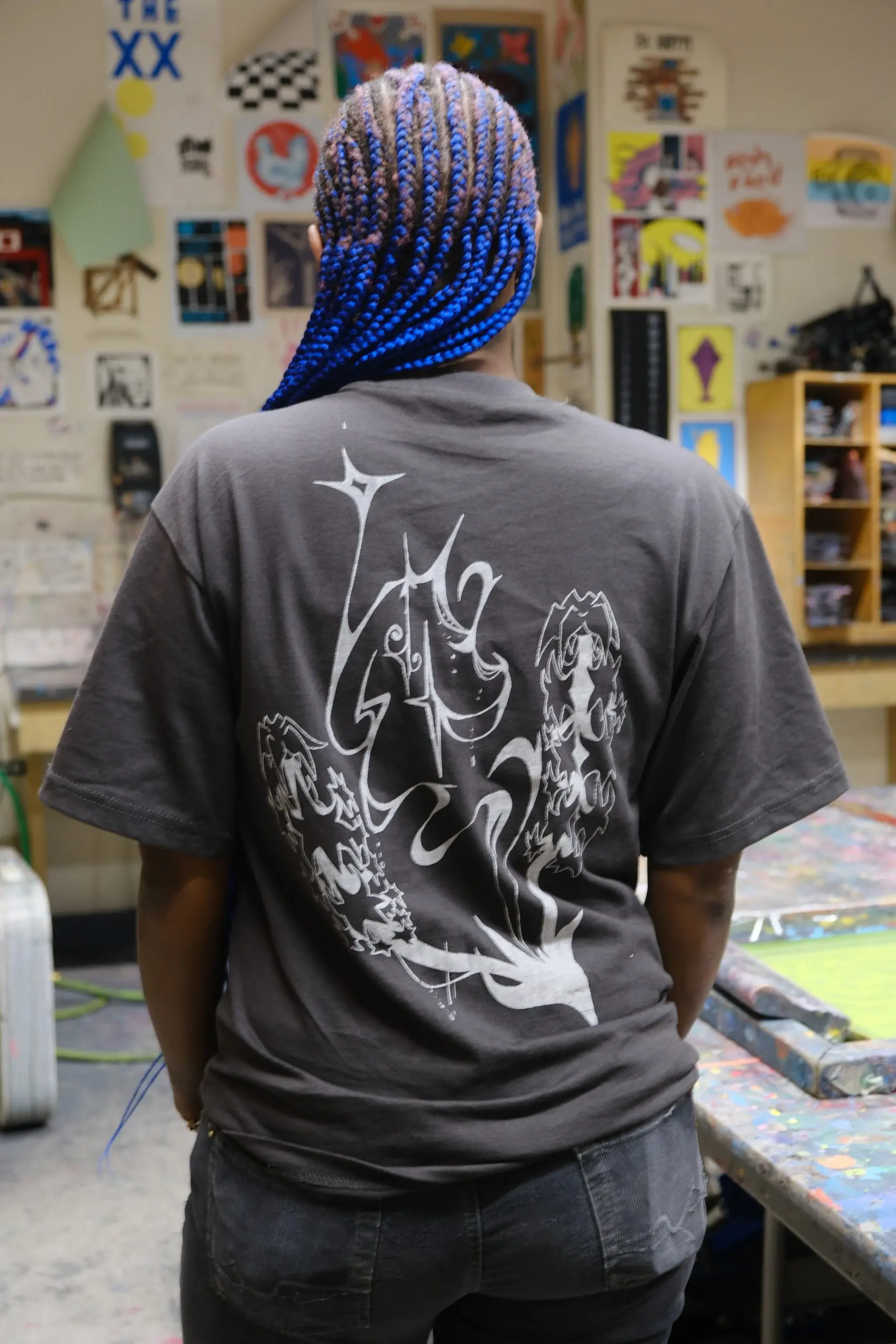 “I’m a huge fan of hyacinths, I have been since I played Animal Crossing and a couple of them popped up on my island. I think they’re gorgeous flowers, and so I included them and my little star/cyber sigilism design on there too. It’s just a design of things that I love, stars and flowers.”