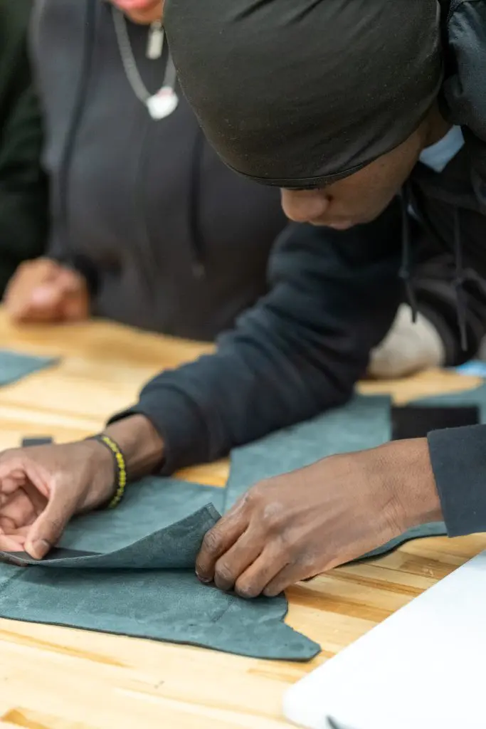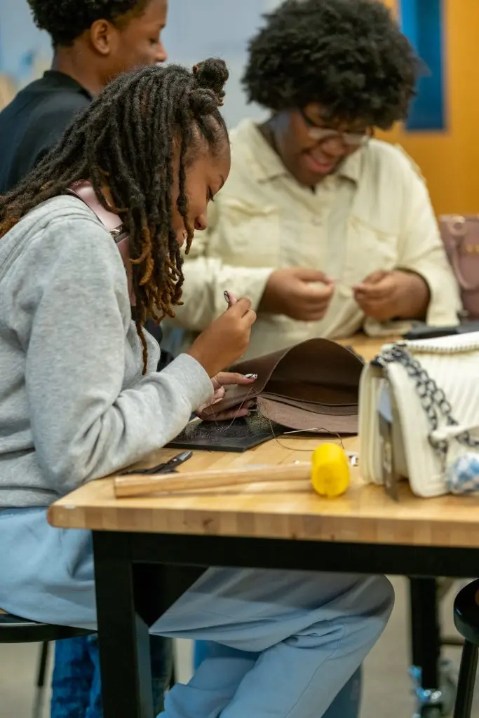 Years later, after returning to Chicago, a friend introduced Alva to ASM and encouraged her to become an instructor. Since then, she has mentored teens and opened up their minds to new possibilities, teaching them how to sew, work with leather, and bring their ideas to life by creating their own bags and sneakers.